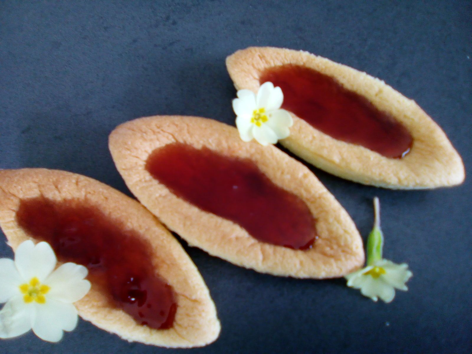 - au choix avec de la confiture ou de la gelée... ici confiture de pêches et gelée de groseilles.