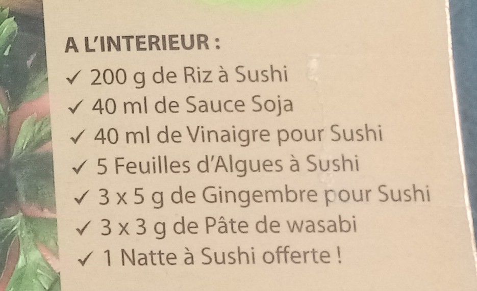 Mais vos nombreux commentaires m'ont décidé!!! Et j'ai trouvé ce kit à moins de 5€... avec la natte à sushi à l'intérieur... (super U)