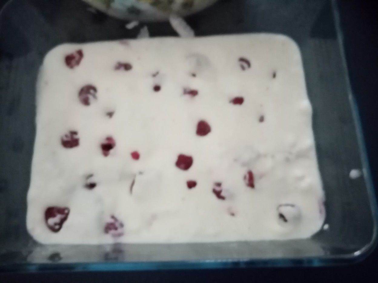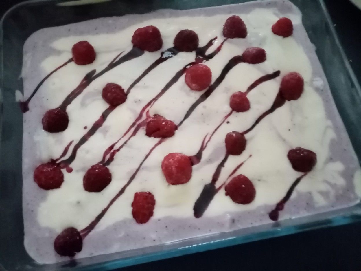 Mélanger une louche de crème avec un peu de coulis pour lui donner une couleur rose si vous voulez comme moi un peu de bicolore pour terminer.