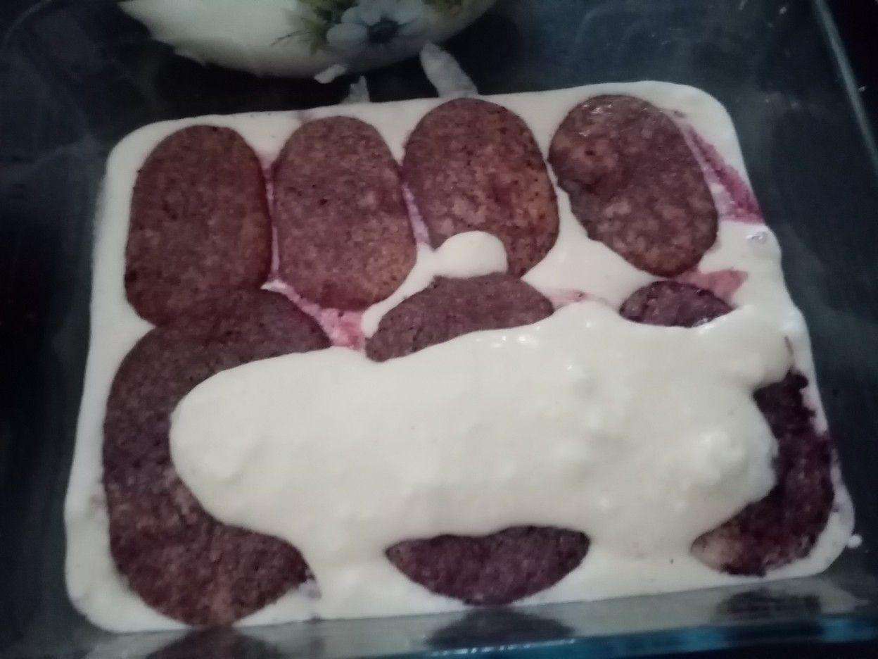 Déposer les biscuits sur la crème et ajouter une nouvelle couche de crème.